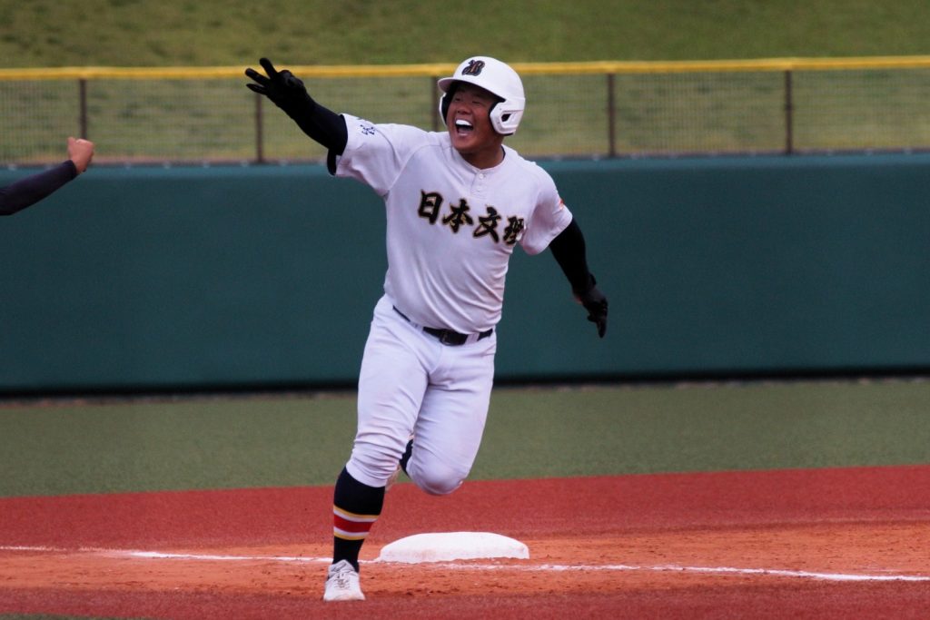 5回裏、日本文理は2死2、3塁から四番・渡部倖成の左前適時打で1点を追加し3-0に。渡部は初回の先制打など3安打2打点