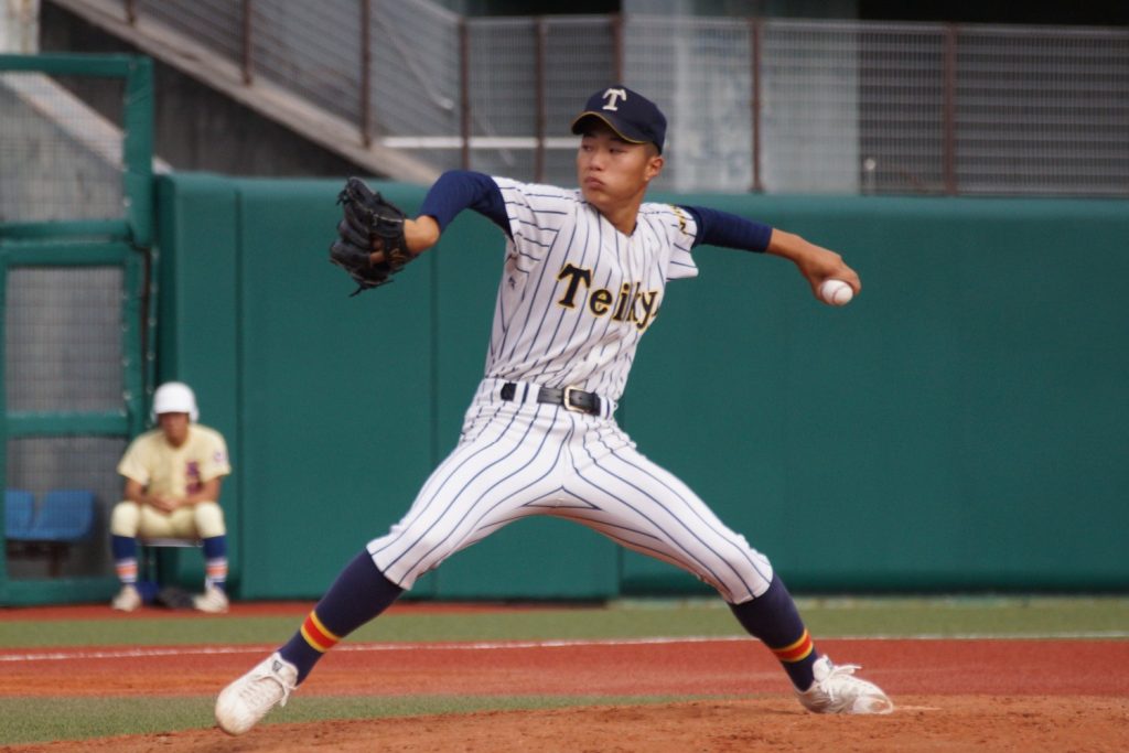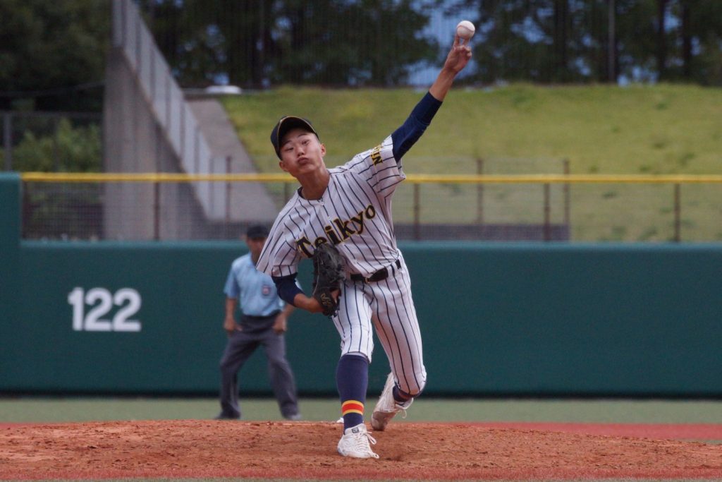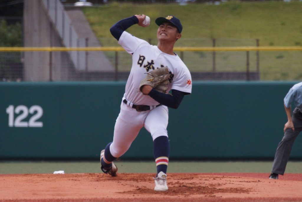 日本文理の先発①染谷崇史(2年)は8回2/3を投げて6失点(自責手4)
