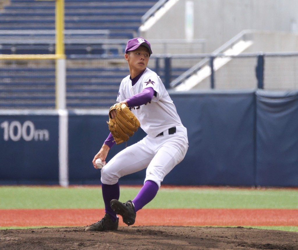 村上桜ヶ丘の①山田天斗投手 6回を投げ被安打3、無失点の投球