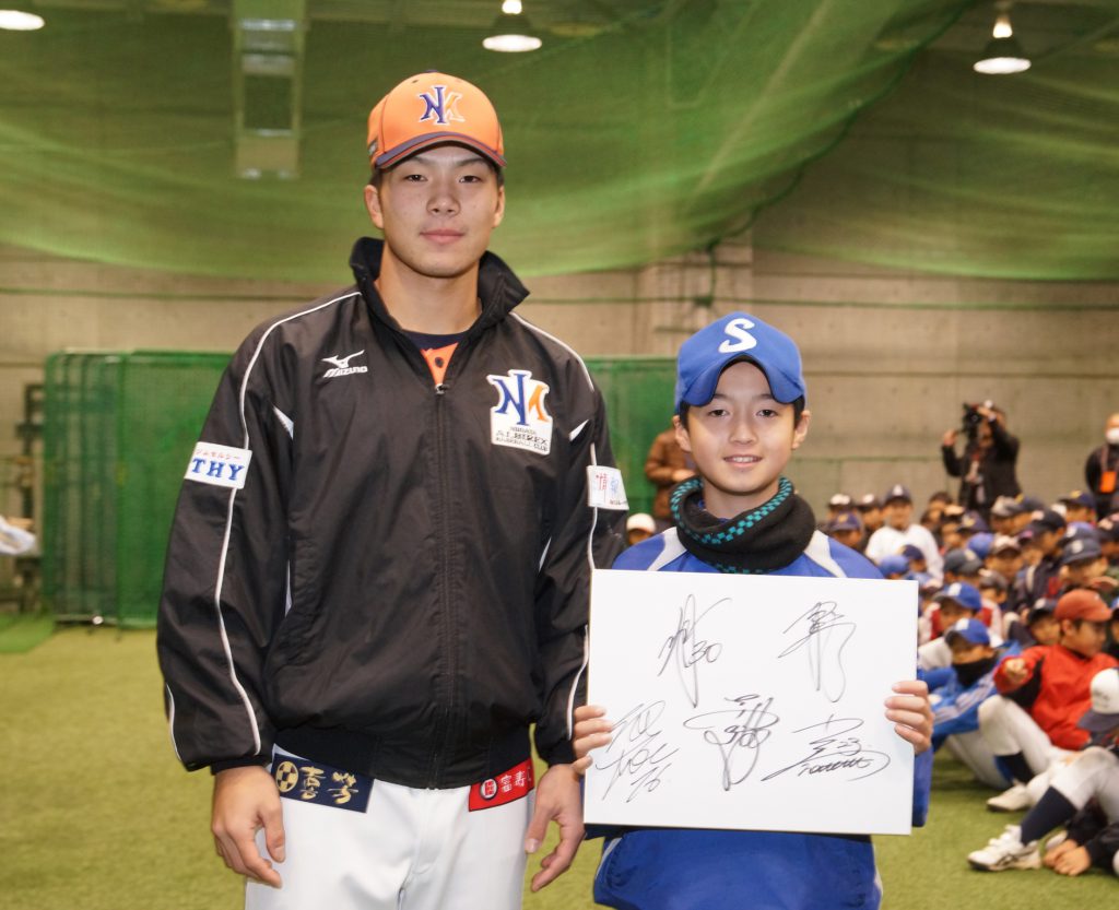 約1時間30分の野球教室後、選手やOBから抽選で子どもたちにプレゼントが贈られた。