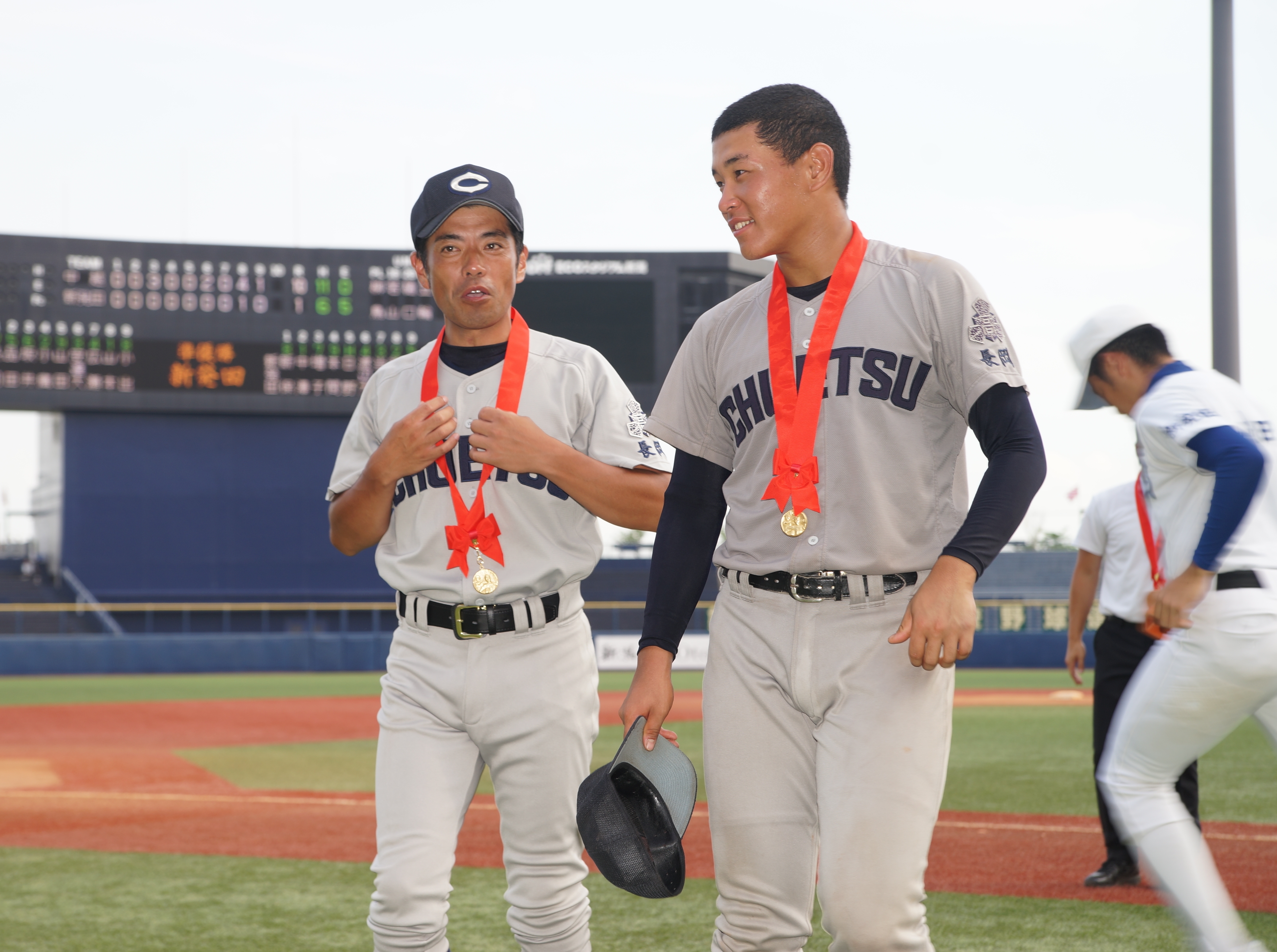 「やっぱり試合に負けたので悔しい気持ちでいっぱい。点差はついたが、選手たちはよく頑張ってくれて、ナイスゲームだったと思っている。当摩の疲労、肩の具合いは準決勝の反動が大きかった。9回を投げるのは厳しいというのがあり、最初に上げると降ろせなくなってしまうので、新田でいけるところまでと思っていた。(新田に先発を告げたのは)昨日。きょうの朝の状況を見て先発があるかもという程度だったが。立ち上がりに課題がある投手だったが、頑張って1回2回と0に抑えてくれた。新田にはいい経験になったと思う。3点までは予想はしていたが、これ以上は苦しいなと思い、思っていたよりも当摩の投入が早くなったのが残念。当摩も必死に抑えてくれた。できれば後ろ4回か3回くらいと思っていたが…。当摩がマウンドに上がったらそれは最後、そこまで総力戦で繋いでいきたいと考えていた。(守備の失策もあった)決勝の舞台で中越さんのプレッシャーに飲み込まれた部分はあるのかなと。大舞台を何回も経験している差を見せつけられた。これからウチのチームが越えていかなければいけないものを得た。山本くんも連投だったので、何とかチャンスがあるのではと思っていたが、外角のキレのある直球、スライダーがしっかり決まり、ウチの選手も手を焼いた。ナイスピッチングにやられた。小鷹くんも素晴らしい捕手というのが率直な感想。ウチの選手は普通の、公立高校の高校生。その可能性、日に日に選手が成長しているなと。こういう経験が大事だし、高校生の無限の可能性を感じさせる大会だった。(3年生へは)月並みだが、ありがとう、一緒に野球ができて幸せだったと言いたい。メダルを掛けてもらっているウチの選手を見て、誇らしく思って、熱くなるものがあった。応援にも大きな力をもらった。新発田高校がこんなにパワーのある学校だと改めて感じた」