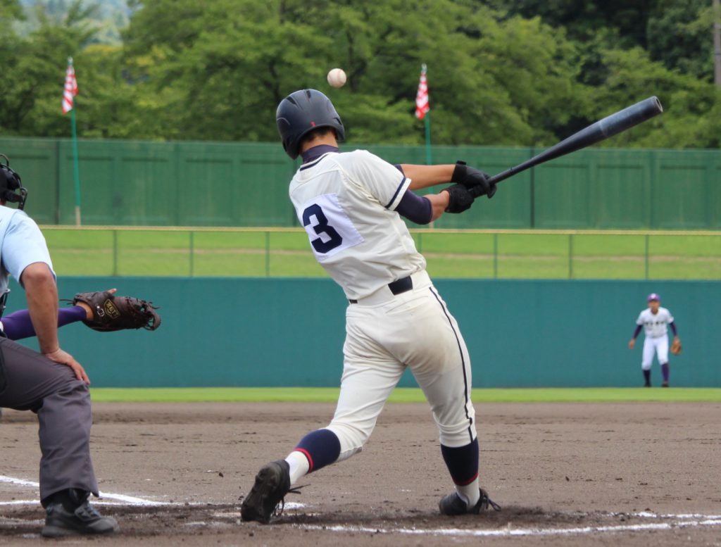 3回裏、糸魚川は伊藤想(3年)が満塁の走者一掃の適時三塁打を放ち、4-0に