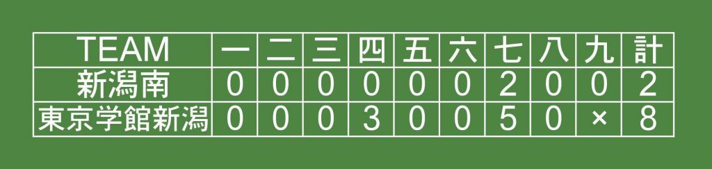 4回裏、東京学館新潟は目黒颯太(3年)の右中間二塁打で2点追加し、3-0に