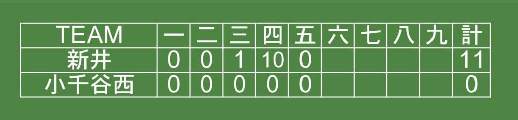 新 井:岡本寛太(1回)、西戸謙伸(4回)、清水泰喜(4回)