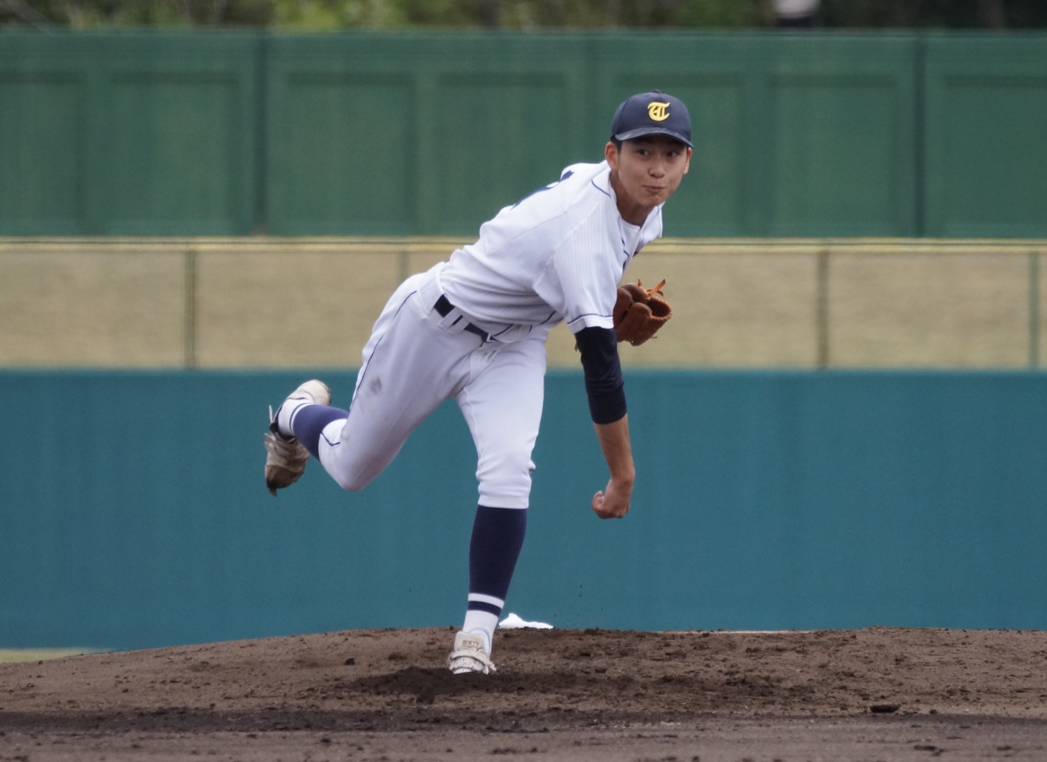 新井の先発①岡本寛太(3年)は5回に2安打を許すまで無安打投球だった