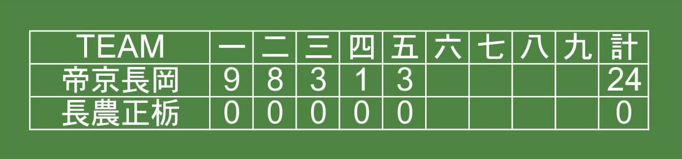 ①帝京長岡24-0長岡農・正徳館・栃尾(5回コールド)