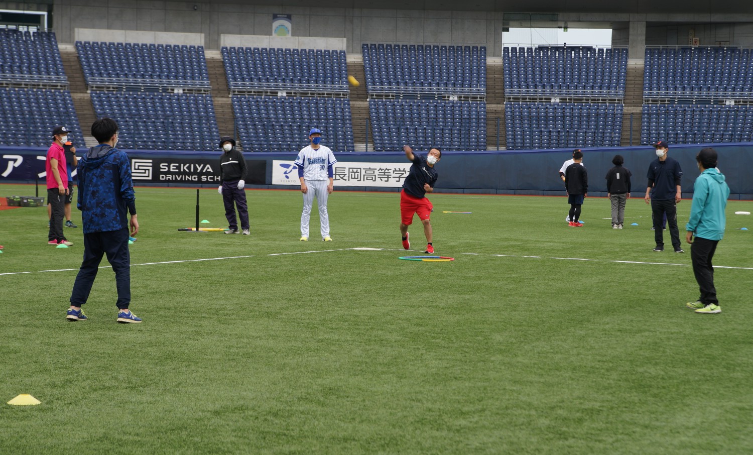 日本野球機構(NPB)は13日、小中学校の教員を対象とした「ベースボール型」授業研究会を新潟市のハードオフ・エコスタジアムで開催し。昨季限りで現役を引退した上越市出身のDeNA元投手でDeNA職員の飯塚悟史さん(日本文理高)らが講師を務めた。研究会には教員約20人が参加し、ボールを使った基本的な動きや、野球の動作やルールを楽しく学ぶことができるミニゲームについて、指導法を学んだ。