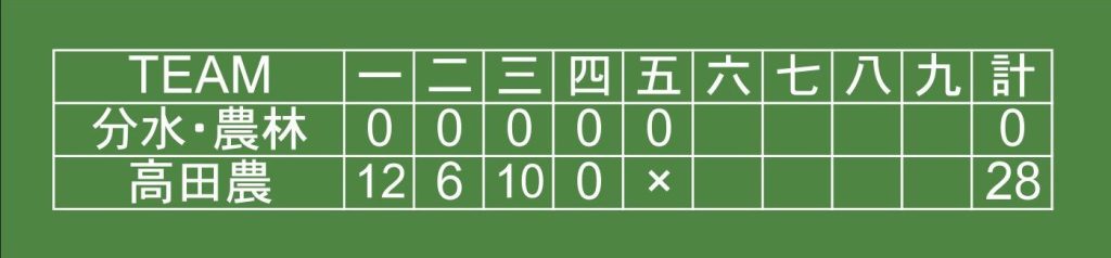 ①高田農28-0分水・加茂農林(5回コールド)
