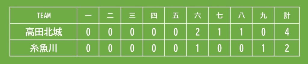 佐藤池①高田北城4-2糸魚川/6回表、高田北城は2死2、3塁から四番・笠原輝磨(2年)の中越え三塁打で2点を先制