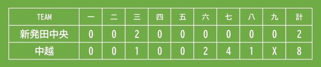 中越:宮崎翔矢(6回)、渡邊櫂史(7回)、柳涼太郎(7回)